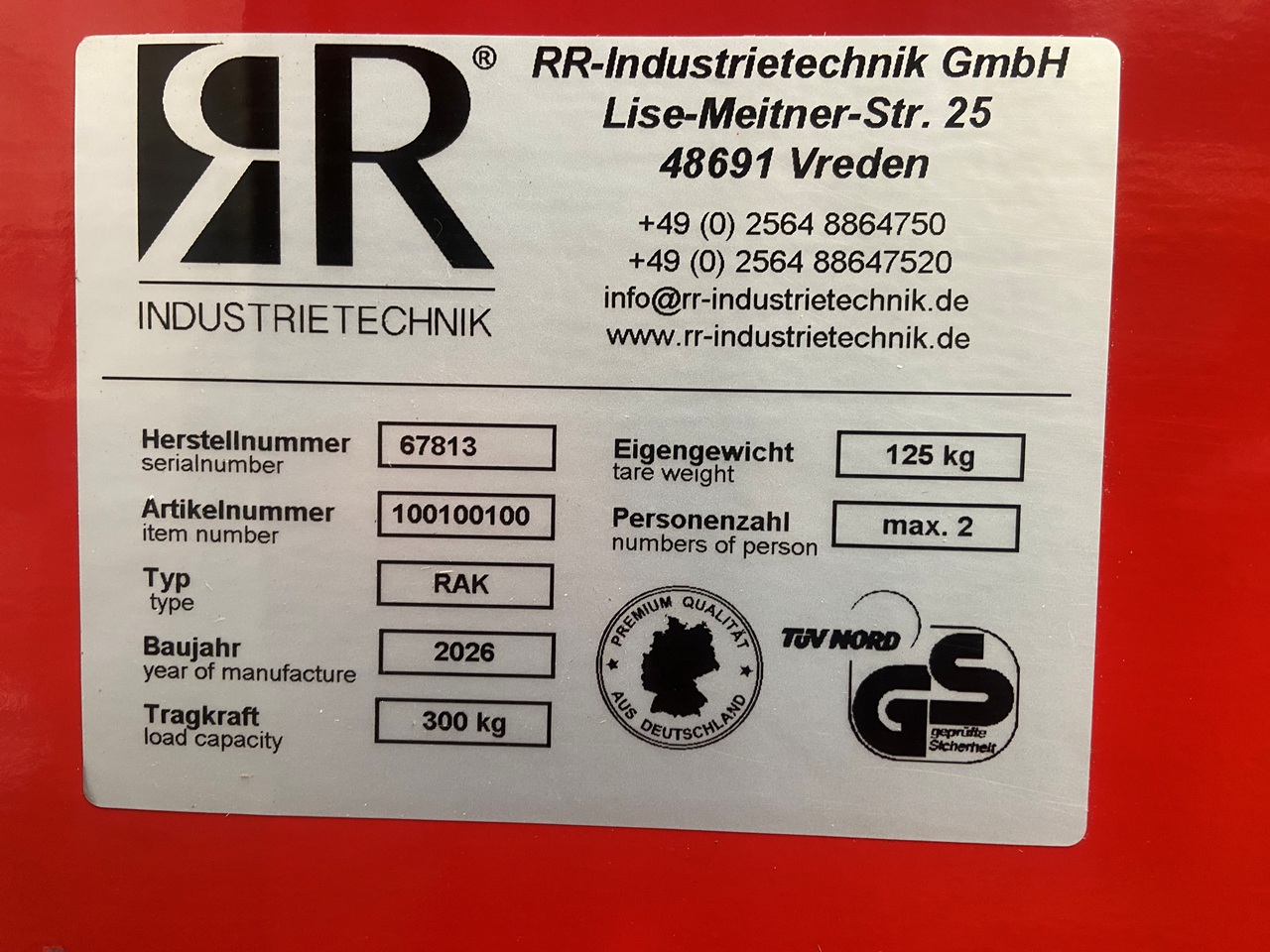 RR Industrie Arbeitskorb RAK, RAL 3000 feuerrot